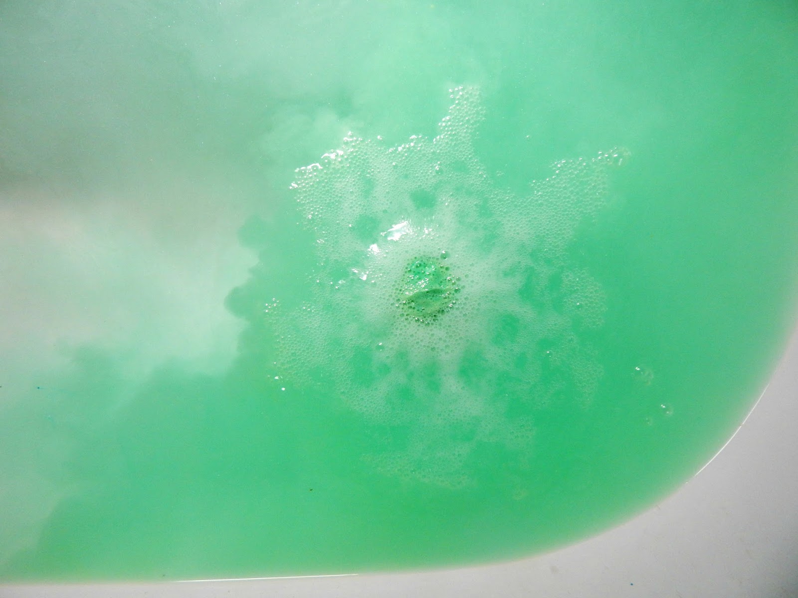 Once it's plonked into your bath, it immediately creates an explosion of shimmery green colouring that spreads out into the water. Avobath does contain a little glitter (or lustre as Lush likes to call it) but it's more shimmery than glittery and doesn't leave you coated like Intergalactic. It's really subtle but does add a little dazzle to what would otherwise be quite a plain bath bomb.